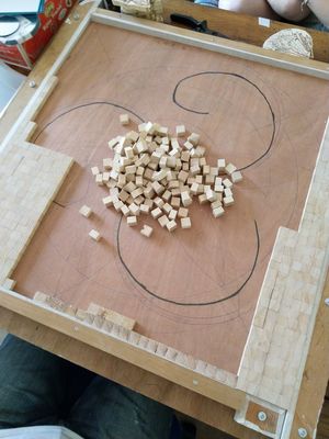 J'ai appris la mosaïque en bois debout chez un artiste autodidacte dans les années 1995/98.